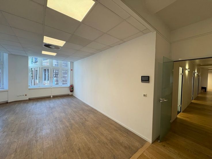 Het statige kantoorgebouw combineert vaste, afgesloten kantoorruimtes met flexibele werkplekken, waardoor het geschikt is voor diverse werkvormen. De indeling kan naar wens worden aangepast: de bestaande kantoorruimtes kunnen eenvoudig worden omgevormd tot één grote open werkruimte.