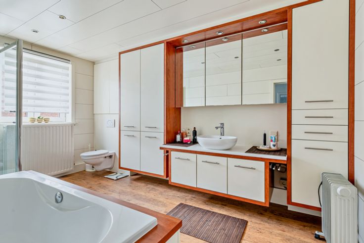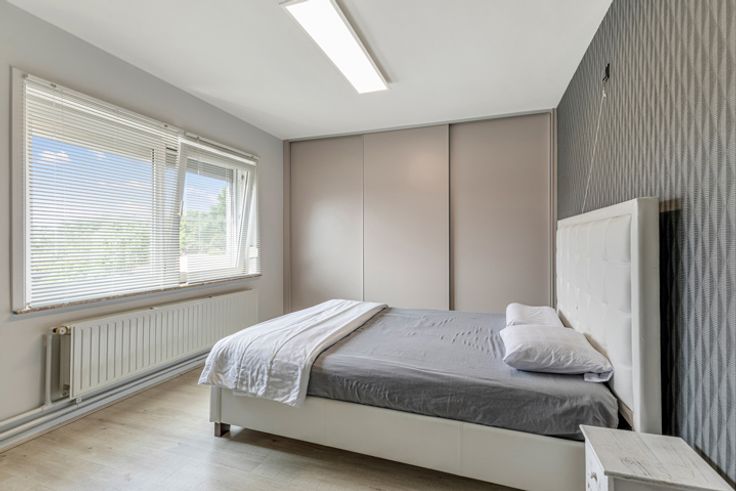 Op de eerste verdieping treft u drie ruime slaapkamers, elk voorzien van ingebouwde kasten. De badkamer is volledig uitgerust met een ligbad, lavabo, een douche en een toilet. Daarnaast biedt de zolder ruimte om eventueel een vierde slaapkamer te creëren, naar uw eigen smaak en behoeften.