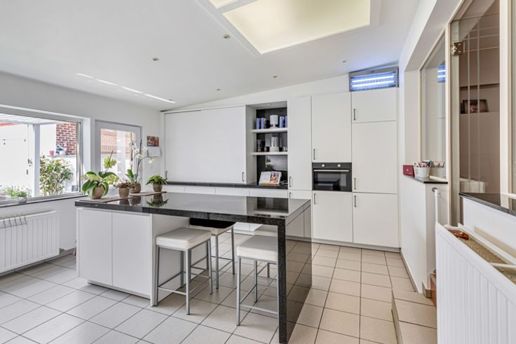 Daarnaast beschikt de gelijkvloers over een ruime leefruimte en een garage met automatische poort. Zowel in de garage als in de toonzaal zijn er koelcellen aanwezig, waardoor uw producten altijd optimaal bewaard kunnen worden.