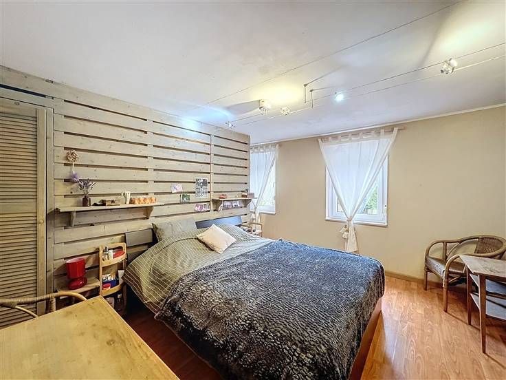 Sorry er is geen nederlandse vertaling beschikbaar. SOMMIERE... Située dans un charmant village à quelques minutes de Dinant, d’Onhaye et d'Anhée, cette propriété offre un cadre paisible et verdoyant, idéal pour une famille. La maison se compose de deux parties distinctes. La première, d’environ 123 m² habitables et en bon état, propose de beaux espaces lumineux, une grande cuisine équipée, deux vastes chambres, une chambre d’appoint ou bureau, une salle de douche moderne, un grenier de rangement ainsi qu’une cave. La seconde partie, en gros œuvre fermé (± 84 m²), offre un potentiel considérable pour un agrandissement de la maison, l’aménagement d’un espace professionnel (profession libérale) ou tout autre projet. Une infraction urbanistique est en cours de régularisation. À noter que le garage et l’atelier présents ne pourront être utilisés qu’en tant que véranda ou jardin d’hiver. À l’extérieur, profitez d’une belle terrasse, d’un jardin soigné avec abri et robot tondeuse, ainsi que de deux places de parking à l’avant. Ce bien dispose également de 16 panneaux photovoltaïques, garantissant des économies d’énergie significatives. Faire offre à partir de 235.000 € (sous réserve d’acceptation des propriétaires). Ne manquez pas cette belle opportunité !