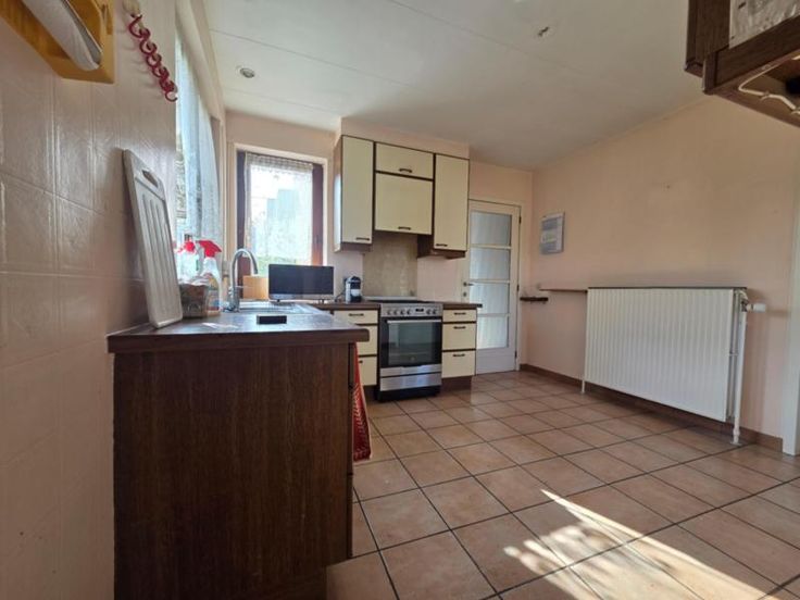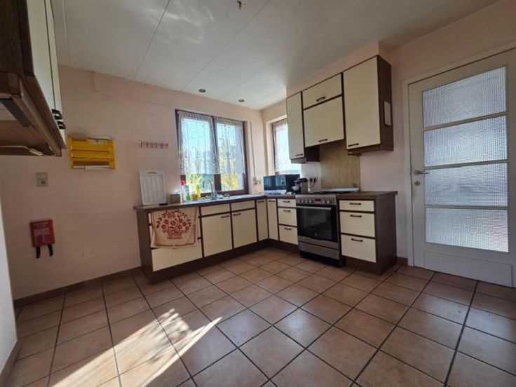 SERAING, rue des Villas, 57 - Belle maison de ville à vendre - COMPOSITION : REZ-DE-CHAUSSEE -sur charpente en béton – totalement carrelée : Hall d’entrée de 9,36 m² (2.40*3.90) - Cuisine non équipée de 12,54 m² ((3.34*3.24)+(1.32*1.30)) - Séjour de 27,26 m² ((3.27*3.41)(4.50*3.58)) – WC - Une pièce complémentaire de 3,10 m² ((1.32*1.61)+(0.81*1.10)) 1er ETAGE -sur charpente en béton – balatum au sol :: Hall de nuit de 4,30 m² (2.12*2.03) - Salle de bain de 5,03 m² (2.48*2.03) - Chambre de 17,29 m² (3.37*5.13) - Chambre de 15,73 m² (3.55*4.47) 2ème ETAGE : Chambre mansardée, de 13,21 m² (4.26*3.10) SOUS-SOL: Trois caves sous la maison RENSEIGNEMENTS DIVERS: Chauffage central gaz de ville – chaudière neuve - Châssis double vitrage en bois (d Volets sur tous les châssis (électrique dans la salle à manger et la cuisine) - Installation électrique non conforme. Pas de panneaux photovoltaïques.- Toiture en tuiles isolée - Garage non attenant de la maison - Jardin à l’arrière de la maison – certificat PEB : E – R.C. : 899,00 euros