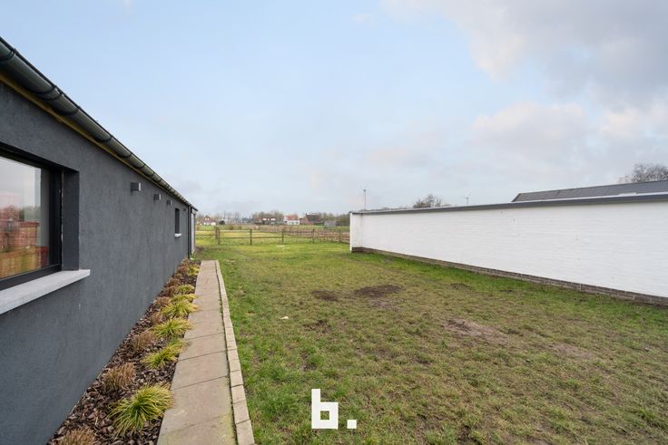 Deze laagbouwwoning met gelijkvloers wooncomfort is landelijk gelegen en heeft een vlotte verbinding naar Brugge en Torhout. De indeling is als volgt: inkom met aparte bureauruimte (momenteel ingericht als vestiaire), gastentoilet, lichtrijke leefruimte met tuinzicht, open keuken met toestellen, aanpalende berging/wasplaats, 3 slaapkamers, badkamer (ruime inloopdouche, ligbad, wastafelmeubel), inpandige garage. BUITENOMGEVING: oprit voor garage, ruime zijdelingse oprit, zonnige tuin met weiland, ruime schuur/paardenstal. Achteraan is er een ruime polyvalente ruimte die de mogelijkheid biedt om een zelfstandig beroep uit te oefenen.