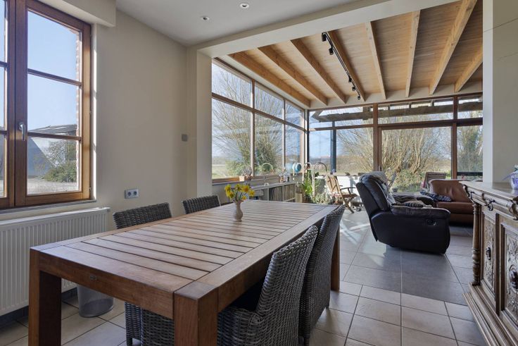 Gerenoveerde landelijke woning te koop in de Zwijnlandstraat 11 te Westvleteren. Deze prachtige woning is gelegen op een unieke locatie tussen de Vlaamse velden op 2,71 hectare. Het huis zelf is volledig gerenoveerd en is instapklaar. Verder is er ook een gesloten hangar en een open loods, geschikt voor opslag of als garage. Er is een bouwvergunning aanwezig voor een bijgebouw op de binnenkoer.INDELINGGelijkvloerse verdieping: Lichtrijke woonkamer voorzien van een bijzondere connectie met de buitenruimte - gezellige zithoek nabij het terras en de vijver - ruime eetplaats - open leefkeuken met houtkachel, volledig geïnstalleerd met de nodige apparaten - gelijkvloerse bureauruimte met maatkasten - technische berging - vautekamer met maatkasten en opbergruimte - gastentoilet. Eerste verdieping: Ruime nachthal met maatkasten - royale masterbedroom met plafond tot in de nok, parketvloer en terras met uniek uitzicht op de vijver en velden - twee slaapkamers - badkamer met lavabomeubel, douche, ligbad en toilet. Verder heeft het huis nog een droge kelder die gebruikt wordt als wasplaats en berging.Bijkomend is er een gesloten hangar van 100m² en een open loods van 230m². Er is een vergunning voor het herbouwen van een bijgebouw op de binnenkoer die onlangs werd gesloopt. De woning is gelegen op een stuk grond van 2,71 hectare. Er zijn verschillende weiden, vijvers, parkeerplaatsen en een prachtige boomgaard. ALGEMEEN- Zonnepanelen (7.870 Wp)- 30.000l regenwater - Centrale
