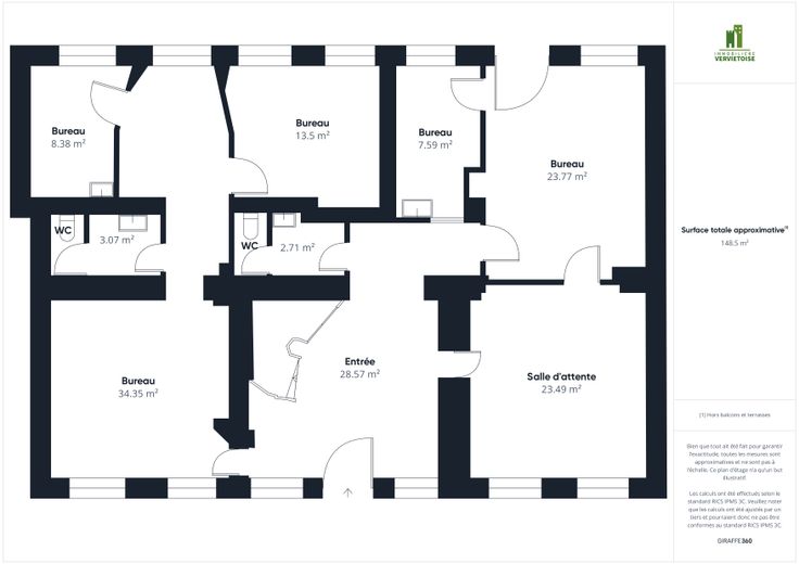 Découvrez cette surface de bureaux idéalement située à un emplacement stratégique sur l'une des avenues principales d'Heusy, offrant une visibilité optimale et un accès facile. D'une superficie totale d'environ 145m², elle se compose de 6 bureaux. Située à proximité des commodités et des transports avec deux places de parking à l'avant du bâtiment, elle saura répondre à vos besoins. Que vous soyez une entreprise ou des professionnels en quête de bureaux fonctionnels, n'attendez plus pour installer votre activité ! Plus d'informations par téléphone au 087/33.03.49 ou par mail à l'adresse suivante : info@i-v.be.