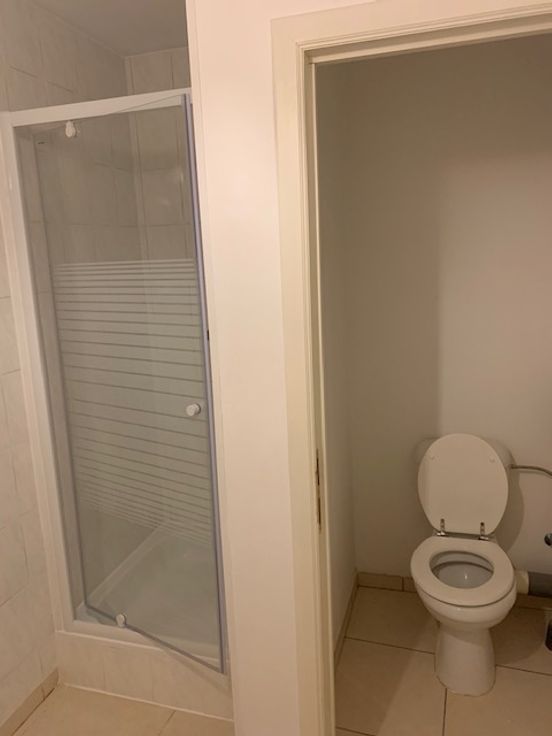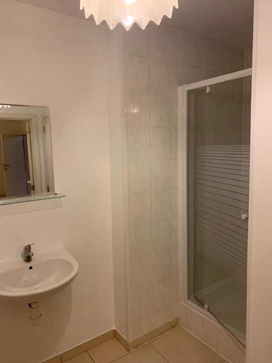 A louer, au centre de Leuze-en-Hainaut, studio au 1er étage, pièce de vie avec cuisine semi-équipée, salle de douche, wc. Loyer 490 € + 275 € charges (chauffage, électricité, eau, nettoyage communs). Libre au 01/05/2025.