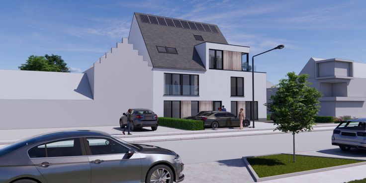 Er zullen 5 appartementen gebouwd worden, met telkens een groot terras, de gelijkvloerse entiteiten beschikken alsook over een tuintje met tuinberging.