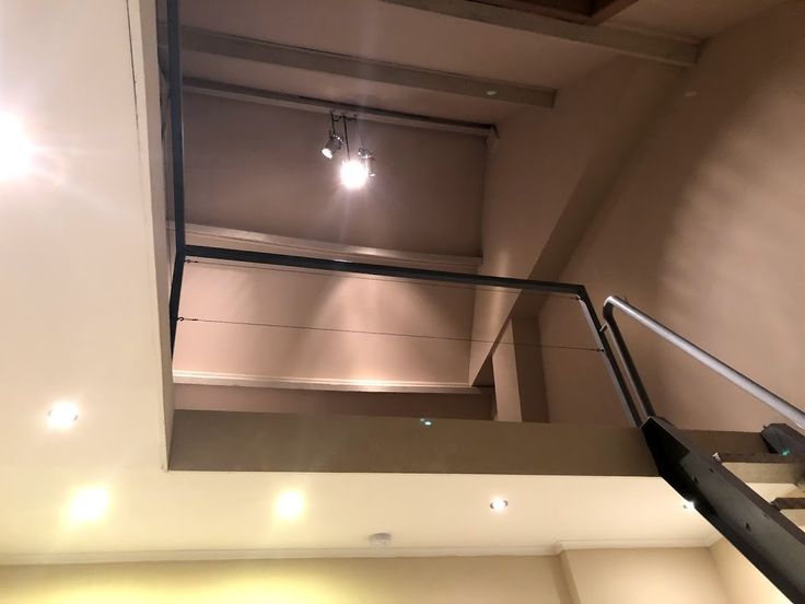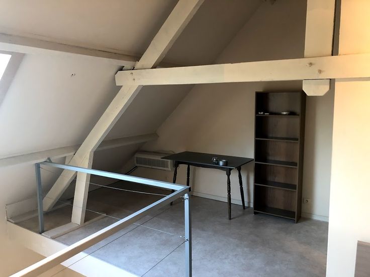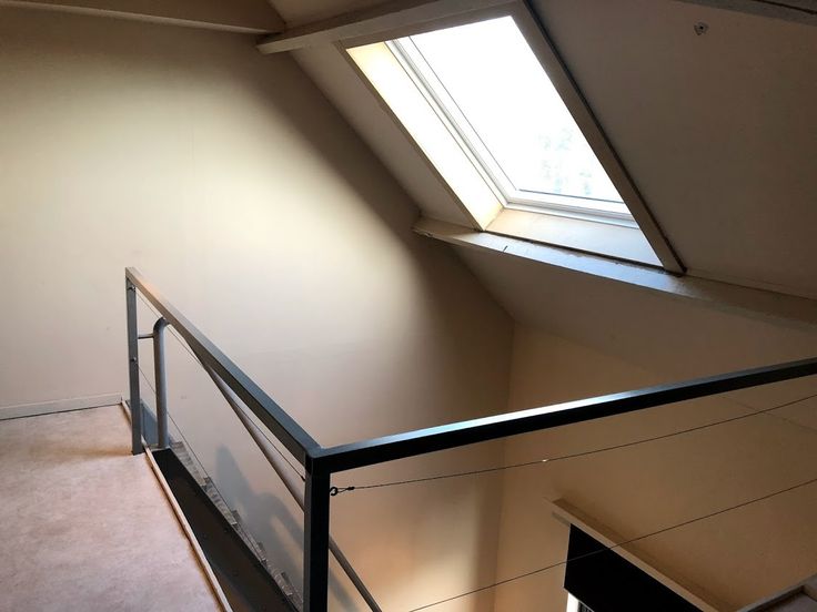 Als we de trap nemen komen we op de duplexverdieping met een hoog plafond waar een ruim tweepersoonsbed kan staan.