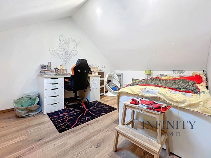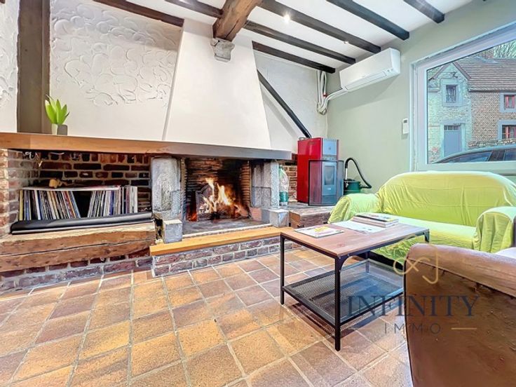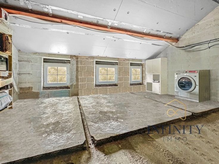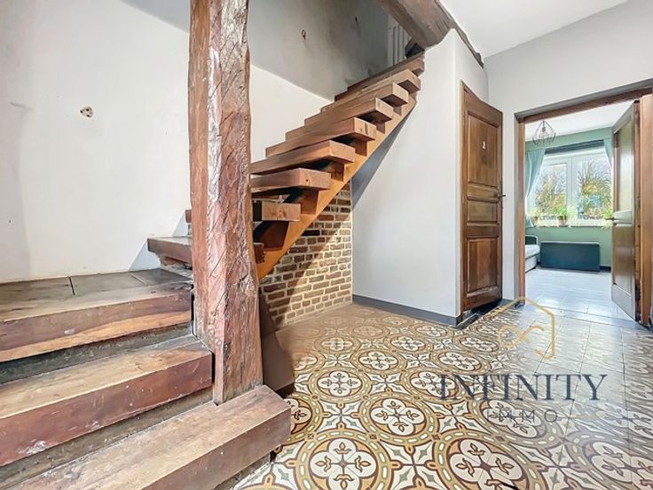 Infinity Immo a le plaisir de vous présenter cet ancien corps de ferme 4 façades composée comme suit : Au rez-de-chaussée, vous découvrirez un hall d’entrée de 12 m², un grand séjour de 35 m², une cuisine équipée de 13 m², un salon de 11 m², Un WC Au premier étage, un hall de nuit de 5 m², une salle de bain (bain et douche) de 4 m², trois chambres de 12 m², 12 m² et 16 m² Au deuxième étage, vous trouverez une chambre de 12 m² ainsi qu'une mezzanine ( bureau) de 16 m². Elle dispose également d'une buanderie de 18 m² et d'une dépendance de 28 m² qui peut permettre d'y exercer une activité complémentaire ou un espace indépendant idéal pour un adolescent e quête d'autonomie. Cette maison, idéalement située dans une impasse ainsi que dans un quartier calme, dispose également d'une terrasse et d’un jardin de 1400 m². Aspects techniques : La toiture est en bon état 16 panneaux photovoltaiques Pôele à pellets + pompe à chaleur Daikin (air-air) Chassis PVC double vitrage Le revenu cadastral est de 500 €. L’électricité est conforme. Le PEB est de classe D avec un score de 321 kWh/m².an et une consommation annuelle estimée à 92 115 kWh. Personne de contact sur place : Stéphanie Gavroye Vous souhaitez visiter cette maison ? N’hésitez pas à nous contacter au 04/295.76.25 ou par mail : demandes@infinity-immo.be
