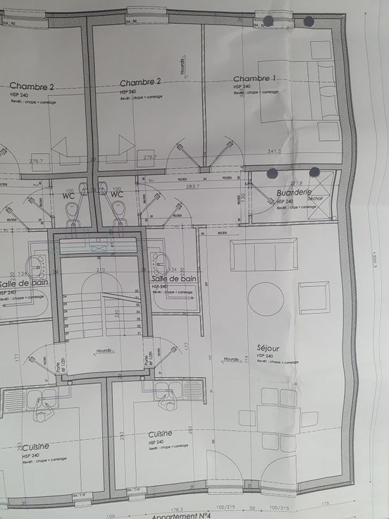 Un grand logis, 2 chambres, une buanderie (équipée d'une machine à laver), 1 salle de douche et wc séparé.