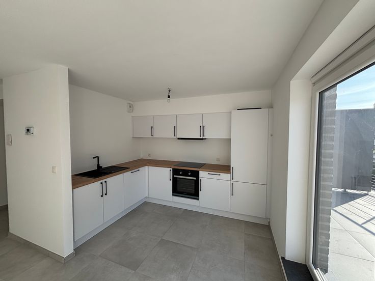 Cet appartement situé au deuxième étage est composé d’un hall d’entrée, WC invité, séjour ouvert sur une cuisine équipée, buanderie, 2 chambres et une salle de douche (meuble lavabo et grande douche). Cet appartement tout confort bénéficie également d’une superbe terrasse privative. Parking privatif. Classe énergétique intéressante : PEB « A ».