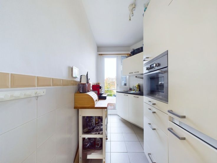 Tomberg Gelegen in de gegeerde wijk Tomberg, in een klein gebouw dat recent werd gerenoveerd. Prachtig gezellig appartement van ongeveer 70m², met een mooie terras (gedeeld met het aangrenzende appartement, mogelijkheid tot privatisering). Inkomhal, woonkamer, eetkamer Volledig uitgeruste keuken (oven, dampkap, vitrokeramische kookplaat, koelkast, vriezer) Twee slaapkamers en een doucheruimte Kosten: €162/maand**, inclusief: onderhoud van de gemeenschappelijke delen en omgeving, lift, verwarming, koud water, elektriciteit voor de gemeenschappelijke delen, verzekering, etc.. .Fietsenstalling beschikbaar in het gebouw Garagebox + parkeerplaats beschikbaar: €50.000 of €40.000 Isolatie en dak gerenoveerd Lift conform de normen Gemeenschappelijke gascondensatieketel, elektrische boiler in elk appartement Waterontharder en zonnepanelen Elektrische installatie conform gemaakt in 2017 EPC E+ deale ligging, dicht bij winkels, openbaar vervoer en scholen. Voor voorwaarden en bezoeken: Anastasios Shinas – 0472/33.62.89 -  as@modifa.be
