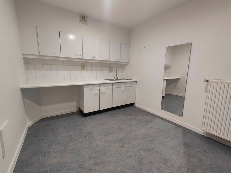 Het commerciële pand bestaat uit een open ruimte met een grote glazen vitrine, wat zorgt voor fantastische zichtbaarheid. Daarnaast beschikt de handelsruimte over een kantoor, sanitair en kitchenette, wat het zeer functioneel maakt.
