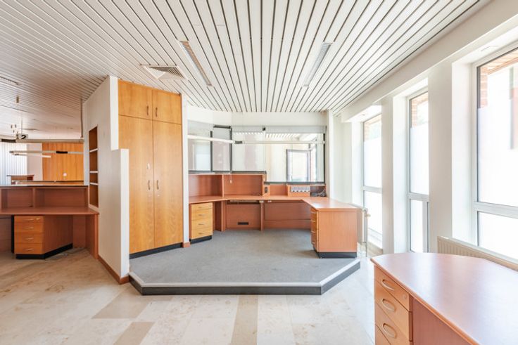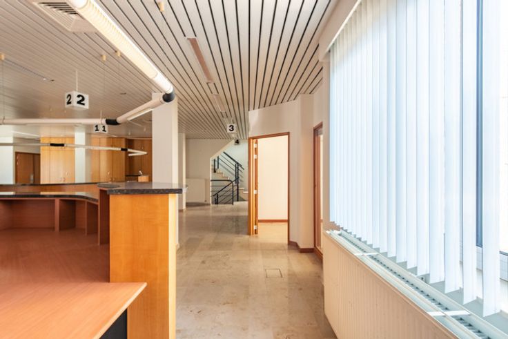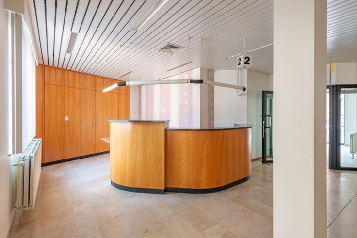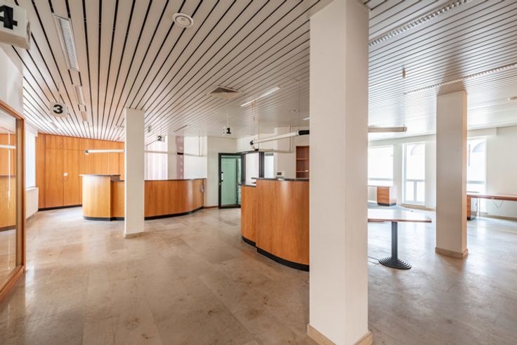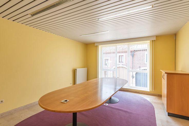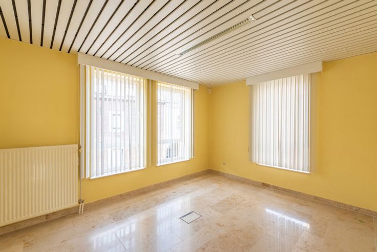 Bureau spacieux (181,5m2) avec appartement (117,2m2) dans le centre de Fouron-le-comte. Ce village pittoresque dans la région des Fourons est particulièrement apprécié par des cyclistes et des randonneurs. REZ-DE-CHAUSSÉE > L'ancienne agence bancaire se présente comme suit : 2 Pièces de 14m2 louées comme bureau de distributeurs automatiques. Hall d’entrée avec accueil. Espace de bureau ouvert de 121m2 avec plusieurs lieux de travail, escalier ouvert et porte vers le parking. 2 espaces bureaux séparés à l’arrière de 22m2 et 21m2.