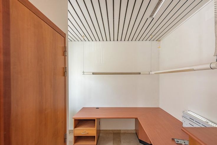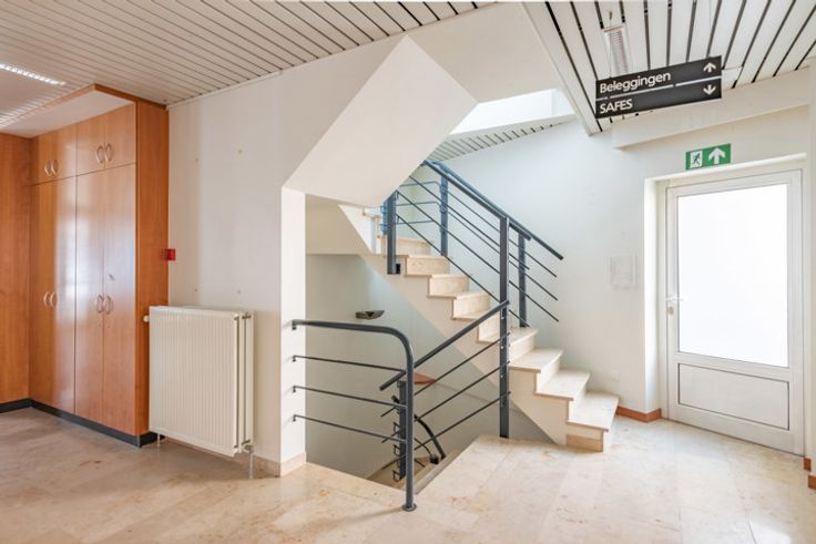 Sur la gauche, il y a une allée partagée vers le parking arrière. PREMIER ÉTAGE > Il y a un bureau supplémentaire de 20,1m2 au premier étage, une petite cuisine et des toilettes h/f séparées. L’appartement spacieux avec la disposition suivante est accessible par le hall d’entrée communale et par l’office. Salon spacieux d’un total de 57,45m2 avec cuisine ouverte et terrasse ensoleillée à l’avant. 2 chambres de 19,5m2 et 13,6m2. Salle de bain avec douche et lavabo. Toilette. SOUS-SOL > Un sous-sol spacieux de 93m2 appartient à la zone bureau et offre donc beaucoup d’espace de stockage. Cave privative à l’appartement 6m2. PARKING > Derrière le bâtiment, il y a un parking partagé avec 3 places de parking réservées. Vous souhaitez plus d’informations ou une visite ? N’hésitez pas à nous contacter.