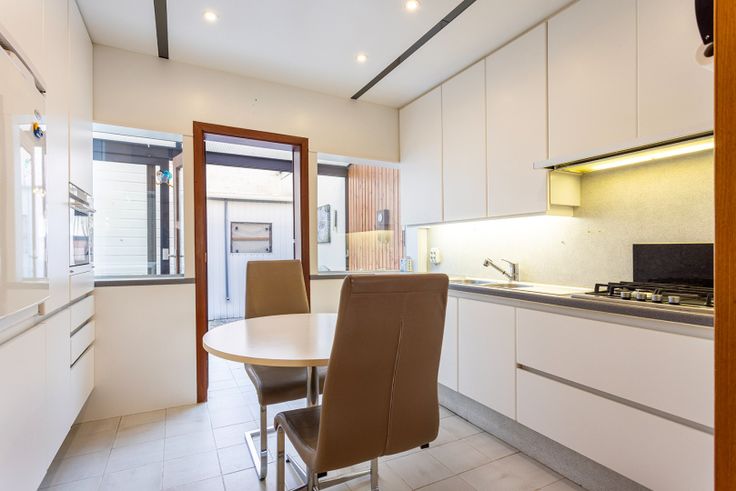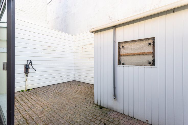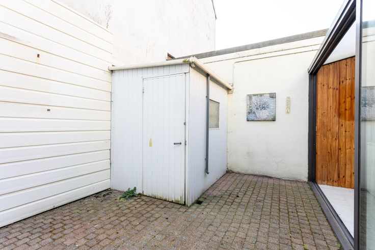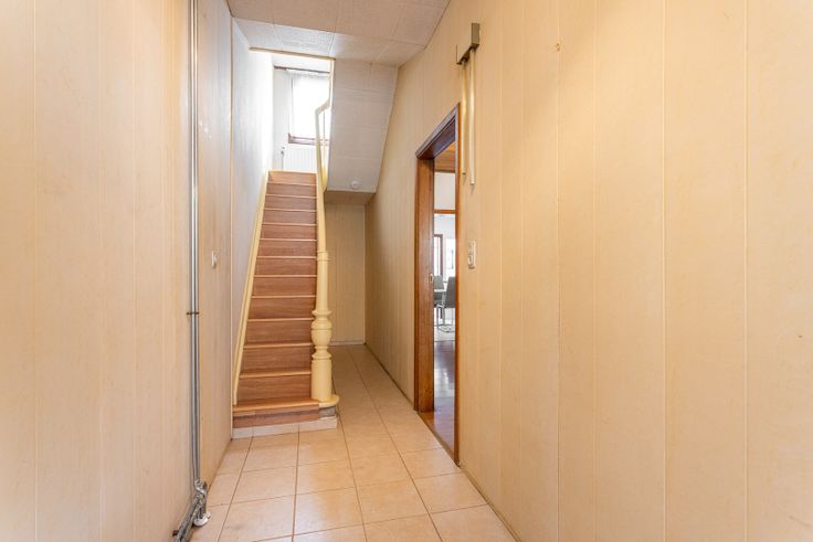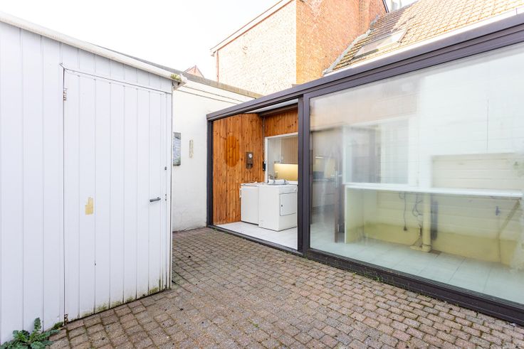 De ruime inkomhal (11m²) leidt ons naar de open woonkamer (26m²) met aansluitend de gezellige keuken (9m²). Van hieruit is er toegang tot de badkamer (4m²) met douche, toilet en wastafel enkel in meubel. Verder is er nog de veranda (7m²) met ruimte voor wasmachine en droogkast en tenslotte de binnenkoer (16m²). Vanuit de inkomhal is er ook toegang tot de beperkte kelder (5m²). Op de eerste verdieping zijn er 2 slaapkamers (20+13m²) en tenslotte is er nog een opbergzolder.