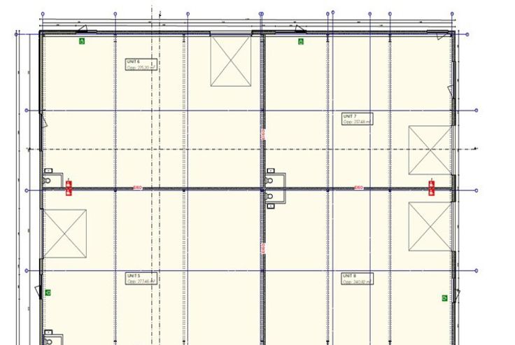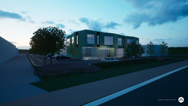 Nieuwbouw KMO park: kantoren 314m²(1st V) + achteraan nog 4 van de 6 nieuwbouw KMO units van 237 - 277m², de KMO units worden afzonderlijk of gecombineerd te huur aangeboden.