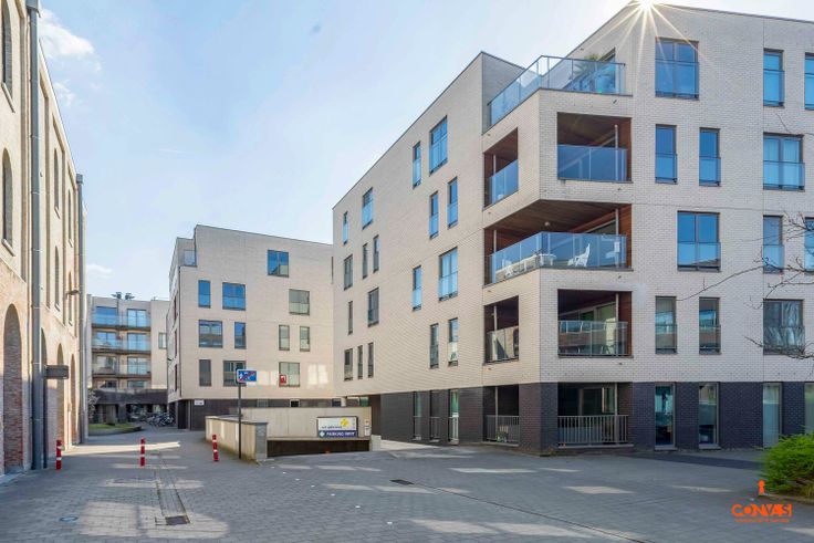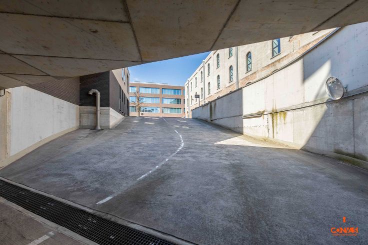 Dankzij de ruime poort, die bediend wordt met afstandsbediening, rijdt u vlot het gebouw in waarna u uw wagen kan parkeren op staanplaats nr. 5.