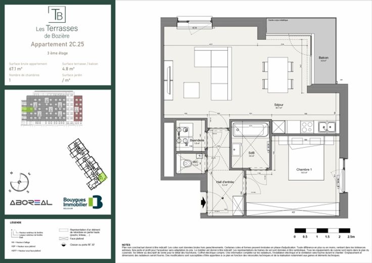 RESIDENCE « LES TERRASSES DE BOZIERE » – APPARTEMENTS NEUFS D’EXCEPTION L’agence Leclercq vous présente ce magnifique appartement 1 chambre d’une superficie de 67,1 m² situé au 3ème étage avec une terrasse de 4,8 m². Ce dernier est idéalement situé dans un cadre privilégié à proximité immédiate de la gare, des transports en commun, des écoles, du centre commercial « Les Bastions » et du centre-ville. L’appartement se compose comme suit : un hall d’entrée avec un wc séparé et une buanderie ; une chambre ; une salle de bain ; un grand séjour avec cuisine ouverte s’ouvrant sur une terrasse. Caractéristiques techniques : - Ascenseur - Chauffage central gaz collectif avec compteurs individuels - Système de ventilation double flux - Douche ou baignoire - Châssis PVC double vitrage Les petits plus selon l’agence immobilière Leclercq : - Chaque appartement est doté d'une cave et d'un parking privé (*en supplément). - Appartement entièrement personnalisable selon le cahier des charges. - Indicateurs PEB jusqu'à A+ - Local vélo & poubelle Prenez rendez-vous pour une visite de l'appartement témoin au 0474/632.493 - guillaume@immo-leclercq.com ou (24h/24h) directement sur notre site : www.immo-leclercq.com Vente sous régime TVA - Loi Breyne. Bien référencé : 6686680 Publicité à caractère non contractuel et ne constituant pas une offre.
