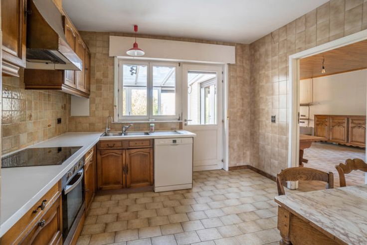 TRIOR vous propose cette agréable villa HABITABLE DE PLAIN PIED de 135m² habitables (+ garage, caves et grenier) implantée sur un joli terrain privatif de 9a 69ca orienté Sud-Ouest à l'arrière. L'espace "vie" se compose d'un hall d'entrée avec toilette visiteurs, un lumineux séjour (40,40m²) avec FO et accès vers le jardin, une cuisine équipée et une véranda. L'espace "nuit" comprend 3 belles chambres (16,00m²; 11,20m²; 8,70m²) et une salle de bains. DIVERS: construction traditionnelle (1985), terrasse orientée Sud-Ouest, double vitrage bois, chauffage central au gaz, garage 1V, facilité de parking, grenier (rangement), caves, etc. PEB classé F. Travaux de modernisation à prévoir. Très chouette opportunité! Plus d'infos et descriptif complet sur www.TRIOR.be