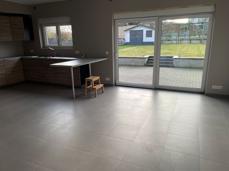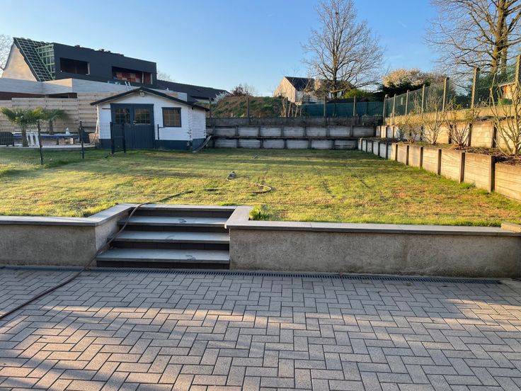 Jardin au niveau du living avec une grande terrasse de 40 m².