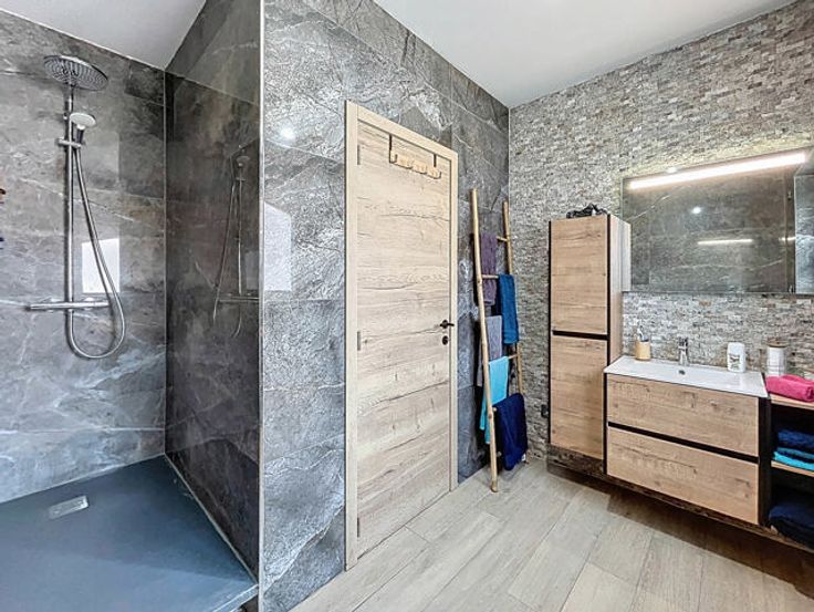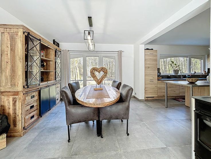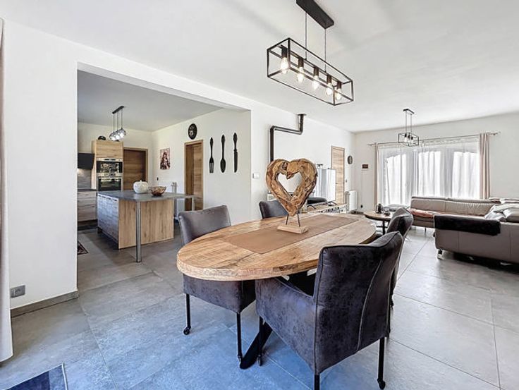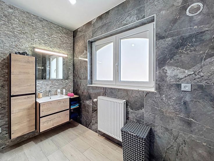L’agence immobilière STRAZZERI’MMO vous présente cette magnifique maison rénovée sise sur une parcelle de 13 ares et comprenant 3ch, 2SDB, allées/parkings, 2 garages, terrasse et jardin, située à Gerpinnes, proche de toutes commodités (transports, commerces, écoles, …). Emplacement stratégique bénéficiant d’un accès aisé en voiture et rapide vers les grands axes. Composition au rez : hall d'entrée (8m2), WC séparé, dressing/bureau (8m2), séjour (31m2) avec poele à pellets et baie-vitrée, ouvert sur cuisine entièrement équipée avec espace repas (15m2), dégagement vers SDD à l’italienne avec meuble-lavabo (6m2), garage (19m2) avec porte motorisée et coin buanderie. Etage (béton) : hall (10m2) vers petit dressing (5m2), SDB (bain, lavabo et WC), et 3 ch (2x 12 et 20m2). Sous-sol : garage (32m2) avec porte manuelle, caves de rangement avec coin buanderie/chaufferie. Ext. : allée/parking, passage latéral (x2), portail, terrasse surélevée et beau jardin. FAIRE OFFRE > 395.000 EUR sous réserve d’acceptation des propriétaires. Divers : chassis PVC DV, cc mazout, vidéophone, PEB cat. « C », électricité non conforme. Surface selon PEB (plancher) : 316m2. Descriptif à titre informatif et non contractuel.
