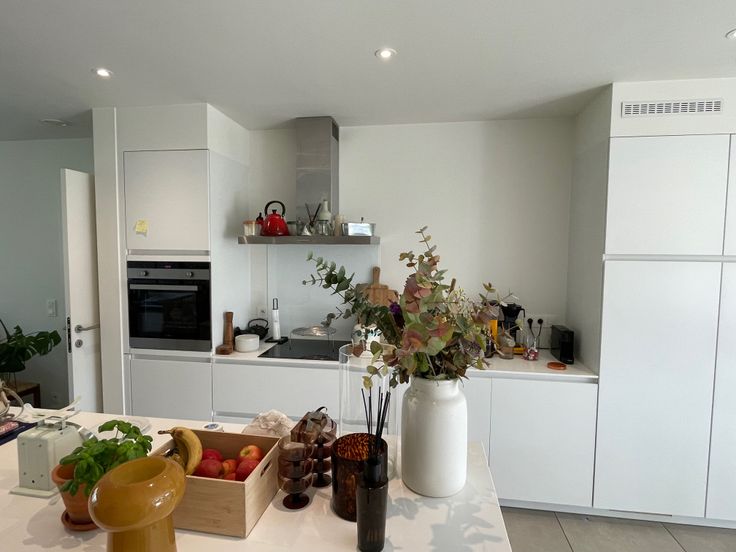 Ruime living (18m2) en eetplaats (14m2), volledig geïnstalleerde open keuken (14.5m2), Siemens toestellen, inbouwspots, berging en wasplaats. Nachthall met 2 slaapkamers (13m2, 10m2), 1 badkamer met grote inloopdouche en dubbele lavabo, kolomkast, inbouwspots, aparte WC. 1 ruime staanplaats in garage met automatische poort inbegrepen. Grote kelder. Zeer gunstig gelegen, in de nabijheid van verschillende scholen, sportcentra, winkels en openbaar vervoer. Tuinhuis ter beschikking. Provisie voor kosten gemeenschap, Eur 100 per maand. Ideaal voor alleenstaande of koppel.