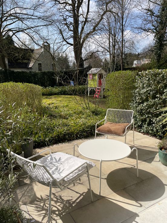 Hoogwaardig afgewerkt appartement (90m2) met lift in klein gebouw, met 2 grote slaapkamers, privatieve voor- en achtertuin met 2 terrassen (11.5m2 en 41m2), veel lichtinval. Gelegen in zeer rustige en groene omgeving, mooi verzicht, nabij Brussel. Alle modern comfort en nieuwste technieken.