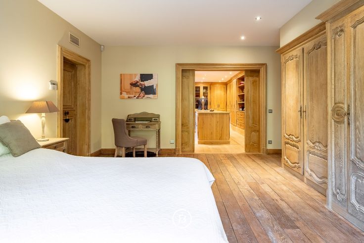 De masterbedroom is een waar privéverblijf: ruim, met een en-suite dressing en een luxueuze badkamer. Daarnaast vind je op het gelijkvloers ook een bureau en een dubbele garage.