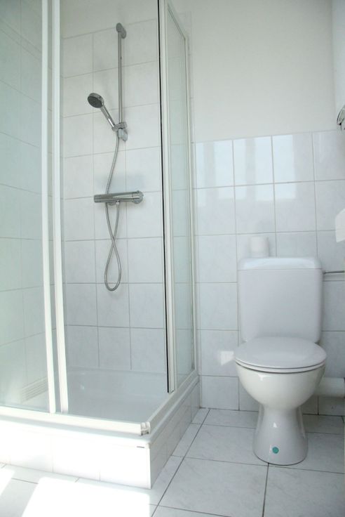 Badkamer met douche, lavabomeubel & toilet