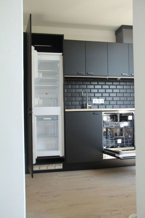 Keuken met koelvriescombi, gasvuur, dampkap, oven & vaatwasser