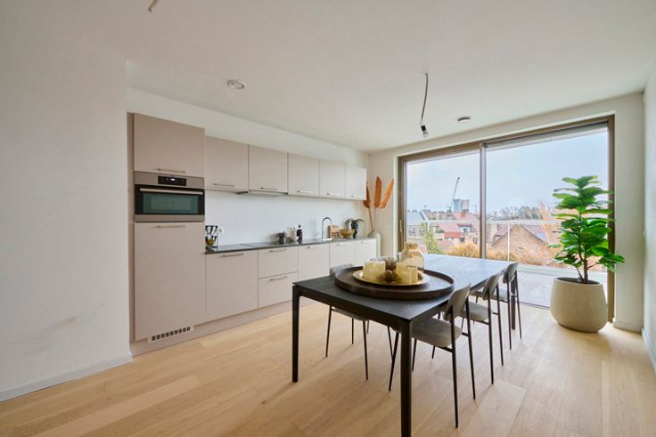 Koop aan 6% btw! De Bonnefant, Wonen in het midden van de stad en toch omgeven door groen. Een iconisch gebouw op een centrale en culturele locatie waar er ruimte is voor luxe, een onvergetelijke woonervaring of zorgeloos wonen in een assistentiewoning. Tussen de gebouwen van De Bonnefant is een groene doorsteek gecreëerd die de Demerstraat rechtstreeks verbindt met het begijnhof. Gezellig vertoeven in één van de twee gemeenschappelijke binnentuinen of liever een barbecue met de buren? Bovendien hebben de terrassen geïntegreerde plantenbakken die zijn uitgerust met een automatisch beregeningssysteem. Een extra groene beleving is verzekerd. Het bestaande RTT-gebouw is volledig gerenoveerd met het behoud van de Hasseltse authenticiteit en verder uitgebreid met energiezuinige nieuwbouw. Parkeren in het centrum is geen evidentie maar toekomstige bewoners van De Bonnefant kunnen parkeren in de ruime ondergrondse parkeerplaats. Je kan ook je fiets kwijt in de fietsenstalling. DOORZONAPPARTEMENTEN: De doorzonappartementen trekken aan twee zijden daglicht dankzij de plafondhoge ramen. Deze ramen en de 1 of 2 terrassen brengen de beleving rondom je nieuwe thuis mee naar binnen. Dit type heeft 2 slaapkamers en 1 badkamer. Appartement B4 APP 05 - Verdiep 4 - bewoonbare oppervlakte: 107,57 m² - oppervlakte terras: 23,02 m² - doorzon leefruimte met open keuken - ruim terras met zicht op de Bonnefantenstraat - 2 slaapkamers - badkamer - berging - apart gastentoilet - autostaanplaats i