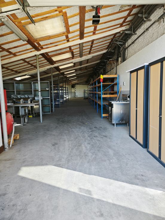 Entrepôt de stockage (250 m²) + bureau entièrement meublé avec kitchenette (42 m²) et wc + parking privatif (150 m²) fermé avec grille (parlophone)