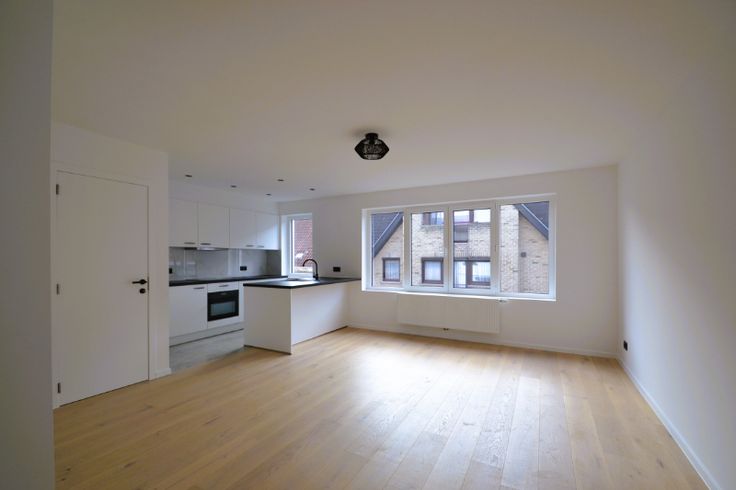 Appartement (75 m²) op de tweede verdieping met terras achteraan. Dit  appartement op de tweede verdieping behoort tot een kleine residentie (6 wooneenheden) met weinig kosten (geen lift aanwezig). Het is een totaalrenovatie, waardoor geen btw verschuldigd is, enkel registratierechten van 2 % of 12 %, naargelang uw persoonlijke situatie. Vooraan bevindt zich het open leefruimte, voorzien van een parketvloer, bestaande uit het salon, de eetplaats, een keukenberging (met aansluiting van de wasmachine) en de open keuken, uitgerust met een afwaseiland, keramische kookplaat, dampkap, frigo met diepvriesvak, oven en vaatwasser. Centraal zijn er het apart toilet en de badkamer voorzien van een handdoekenradiator, een inloopdouche (met getint glas) en een badkamermeubel met wastafel en verlichte spiegel. Achteraan zijn er twee slaapkamers (eveneens met parketvloer) en een aangenaam inpandig terras met de nodige privacy. Bij dit appartement hoort eveneens een kelderberging. Er is de mogelijkheid tot aankoop van een garage.   Renovatieplicht: onbekend