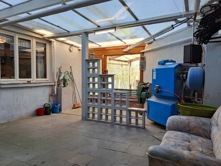 De woning beschikt over een fietsengarage/berging met voldoende plaats voor een remorque en meerdere fietsen. Via de inkomhal kom je in de aangename leefruimte. Verder zijn er een keuken, veranda met zicht op het koertje, badkamer met bad en lavabo, apart toilet en kleine wasplaats. Daarnaast is er een droge kelder aanwezig. Op de eerste verdieping bevinden zich een nachthal en drie slaapkamers. Een vaste trap leidt naar de zolder, die mits de juiste aanpak perfect kan worden omgevormd tot extra slaapkamers.