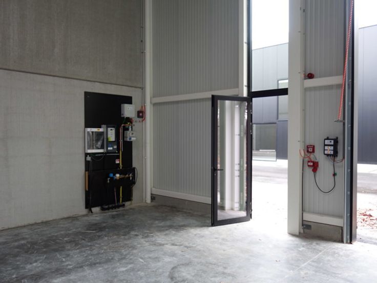 Het gebouw is volledig geïsoleerd en verder voorzien van een lichtstraat met geïntegreerd rookluik, gepolierde betonvloer, verlichting, sanitair en een automatische sectionaalpoort van +/- 4 m x 4 m.