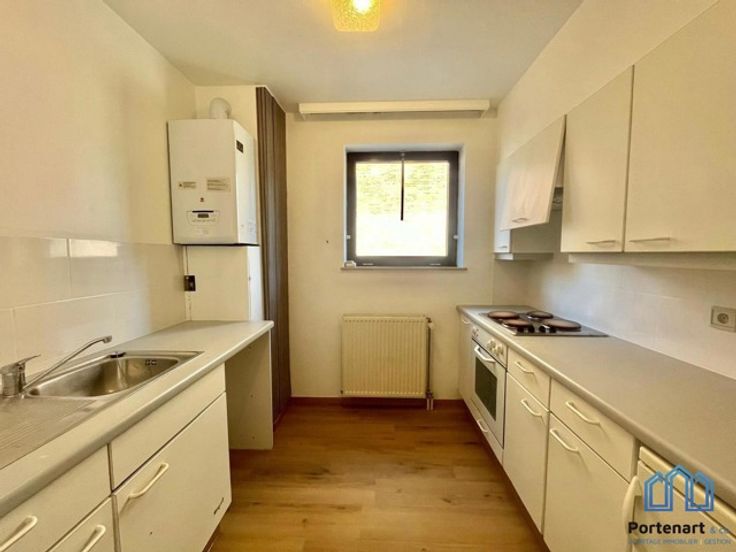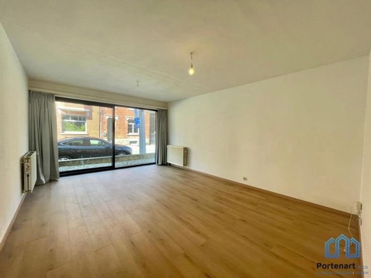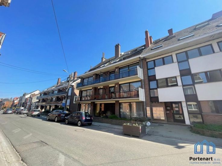 ***Vidéo de présentation www.portenart.be*** Agréable appartement (avec garage fermé et place de parking privative) situé à deux pas du Douaire et de la gare, au rez-de-chaussée d'un immeuble convivial. Composition : un séjour de 23 m² avec une première terrasse, un hall d'entrée, une salle de bain, une cuisine séparée (four, taque électrique, hotte, frigo), un WC séparé, une chambre (14 m²) et une deuxième terrasse avec jardin. Provisions pour les charges communes et l'eau privée : 80€/mois. Compteurs gaz et électricité individuels. Disponible immédiatement.