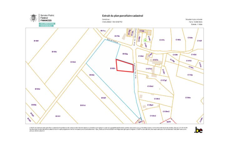 La propriété est reprise au plan de secteur en zone d'habitat à caractère rural (bande de 50 mètres depuis la limite à front de la rue du monument) et en zone agricole (partie solde de la propriété en fond de parcelle).