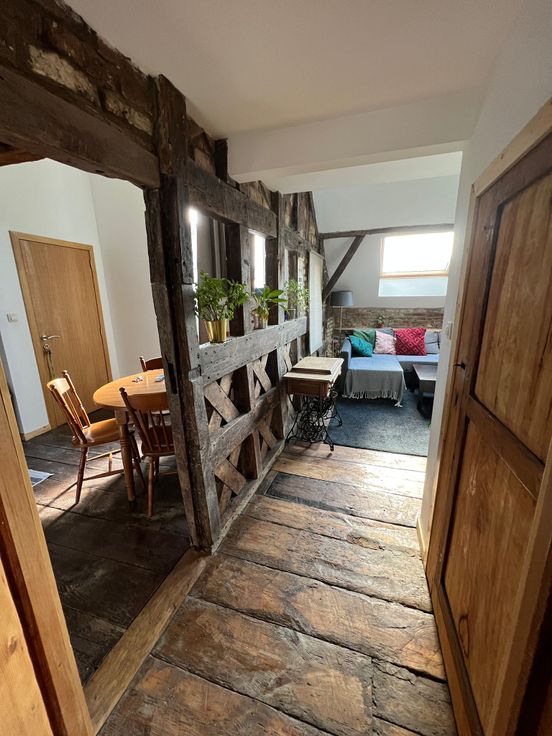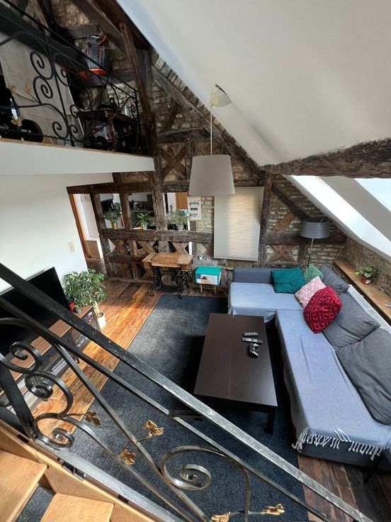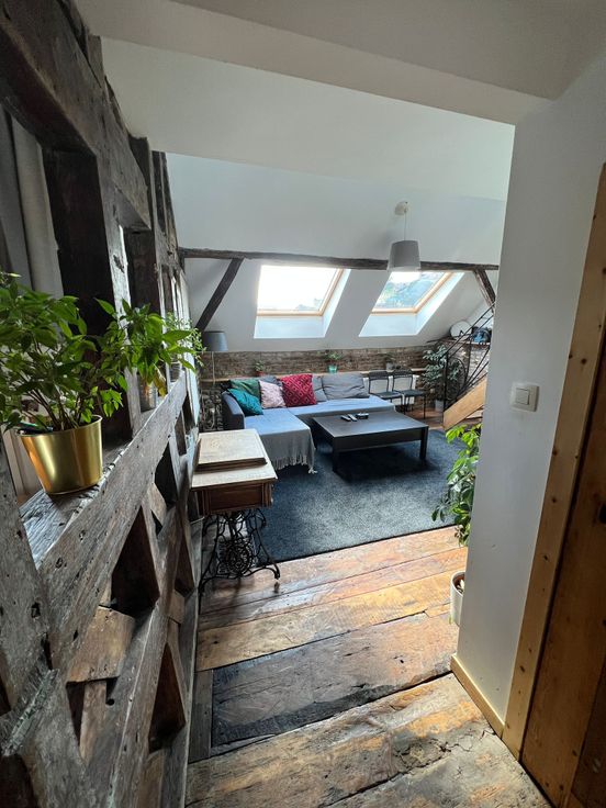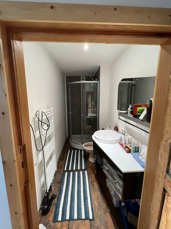 Composé d'un salon, d'une mezzanine, d'une cuisine équipée, de 2 chambres, d'une salle de bain équipée (meuble bas, grand miroir, radiateur porte serviettes)