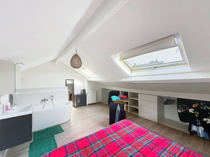 Dit volledig gerenoveerde appartement van ±72m² bevindt zich op de 2e verdieping met een privétrap naar de 3e. Het beschikt over een groot terras met een open groen uitzicht, toegankelijk via een brede schuifdeur, wat voor veel natuurlijk licht zorgt.De leefruimte omvat een lichtrijke woonkamer, een open ingerichte keuken (oven, vaatwasser, kookplaat, ingebouwde koelkast) en een wasruimte. Het appartement heeft 2 ruime slaapkamers (30m² en 15m²), waarvan één met een open badkamer, toilet, wastafel en veel opbergruimte. Een tweede doucheruimte maakt het geheel compleet.Volledig vernieuwd in 2015: nieuwe elektriciteit, sanitair, gasverwarming en radiatoren. Overal houten vloeren voor een warme uitstraling. Lage gemeenschappelijke kosten.Perfect gelegen nabij winkels, scholen, openbaar vervoer en het Zoniënwoud, in een rustige omgeving zonder geluidsoverlast.Een echte buitenkans! Contacteer ons voor een bezoek.