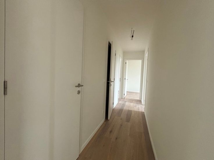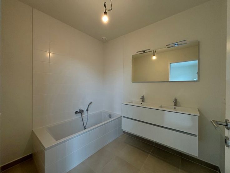 EVERE - Gelegen in een rustige, stedelijke woonwijk dicht bij een breed aanbod van faciliteiten en vervoersverbindingen (scholen, winkels, luchthaven, NATO, bus, station Evere, Ring, E40, enz.), prachtig PENTHOUSE (3slpk/1badk/1douche) van 104,29 m² met twee TERRASSEN van 8,3 m² en 26,3 m². Gelegen op de 4e en laatste verdieping, bestaat het uit een inkomhal, een woonkamer van 35,5 m² die uitkomt op de twee terrassen, een volledig uitgeruste open keuken grenzend aan een wasruimte, een nachthal, een WC, een master bedroom van 14,2 m² met directe toegang tot het hoofdterras en een en-suite badkamer (dubbele wastafel, bad), twee andere slaapkamers (10,5 en 9,1 m²) en een douchekamer (wastafel, douche). De leefruimtes zijn licht en luchtig, en het uitzicht aan de achterkant is groen en vrij. Het met zorg gebouwde gebouw van 4 verdiepingen biedt een hoge afwerkings- en uitrustingsstandaard, evenals een hoogwaardige isolatie. EPC B+. Mogelijkheid tot aankoop van een kelder tegen meerprijs. Parkeerplaats in extra. Gemeenschappelijke fietsenberging beschikbaar. Verkoop van de grond onderworpen aan registratierechten (12,5%) en van het gebouw onderworpen aan BTW (21%). Meer informatie bij L&P !