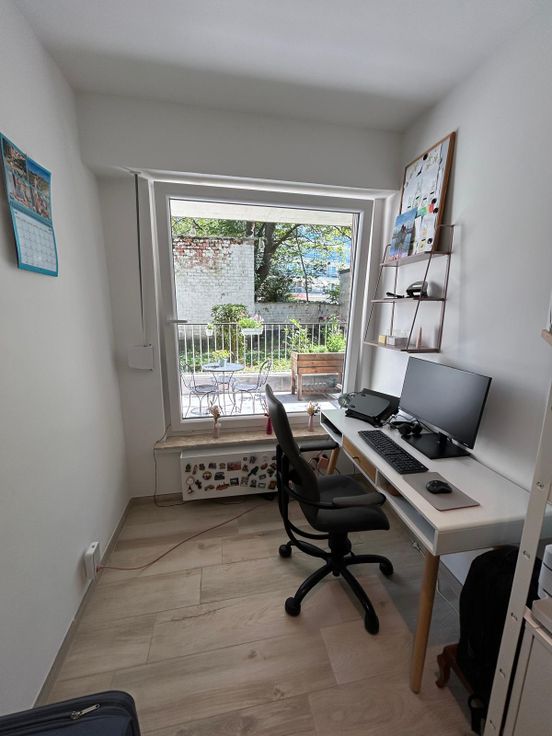 Plafondverlichting en raambekleding zijn reeds aanwezig. De gemeenschappelijke kosten bedragen €200/maand en omvatten reeds het gas- en waterverbruik. Geen huisdieren toegelaten.