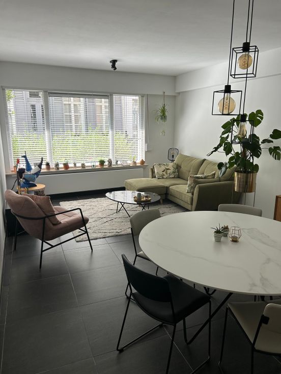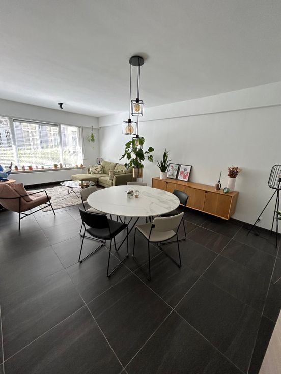 Het appartement heeft 2 slaapkamers, ruim en deels overdekt terras, badkamer met bad, apart toilet, aparte keuken, hal, living, privatieve kelder en gemeenschappelijke fietsenstalling. Het 92 m2 appartement werd volledig gerenoveerd in 2019 en is volledig instapklaar. Het appartement wordt enkel verhuurd aan 1 of maximum 2 personen (inwonend).