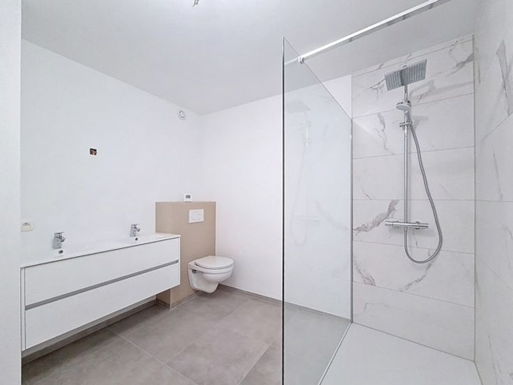 TVA 6% ! Idéalement situé sur la commune de Ans, proche de toutes commodités et accès aisé aux grands axes, au sein d'une résidence comprenant 5 unités, superbe appartement neuf de 84 m² situé au 1er étage comprenant: un agréable et lumineux séjour de 35 m² donnant accès à la terrasse de 21 m², une cuisine non comprise, une buanderie, une salle de bains, un WC séparé, un hall de nuit et 2 chambres de 12 m². Cet appartement dispose de tout le confort moderne: chauffage sol, isolation performante, 4 panneaux photovoltaïques par logement avec onduleur, châssis PVC double vitrage super isolant, ventilation simple flux, matériaux et finitions de qualité. Prix: 227.500€. Vente sous le régime avantageux de la TVA à 6 %(voir conditions). Possibilité d'emplacement de parking extérieur à l'arrière de la résidence (supplément de 10.000€). Cahier des charges et informations disponibles sur simple demande à l'agence au 04/336.35.82 ou sur notre site www.treviliege.be rubrique projets neufs. Informations données à titre indicatives et non contractuelles. Cette annonce ne constitue pas une offre.