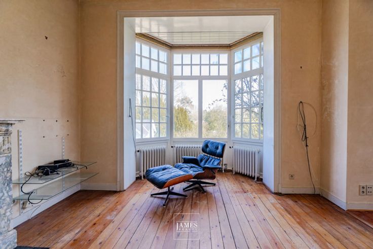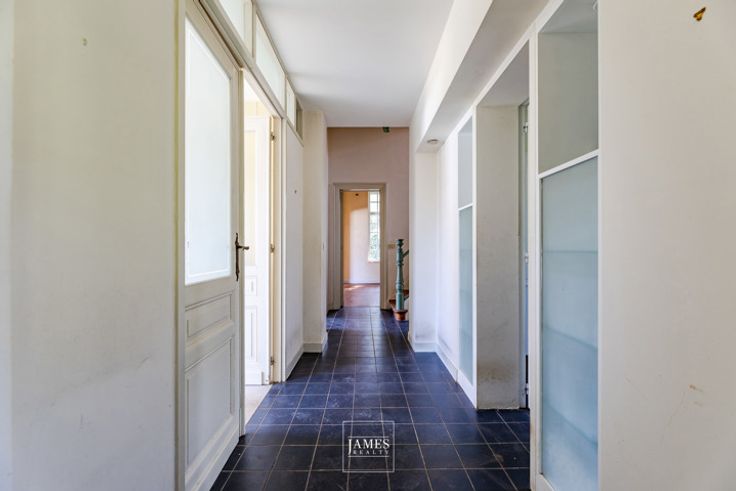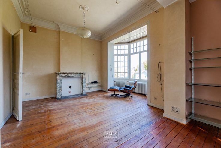 De hoofdwoning biedt mooie volumes en een flexibele indeling. Op het gelijkvloers bevinden zich een ruime bureauruimte, een salon, een eetkamer en een keuken. Op de eerste verdieping: een grote slaapkamer, een dressing, een badkamer en een atelier. Op de tweede verdieping is er de mogelijkheid om twee extra slaapkamers en een badkamer te creëren.