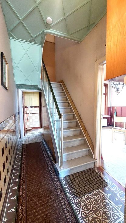 In de woning zelf de inkomhal en woonkamer en boven 2 slaapkamers