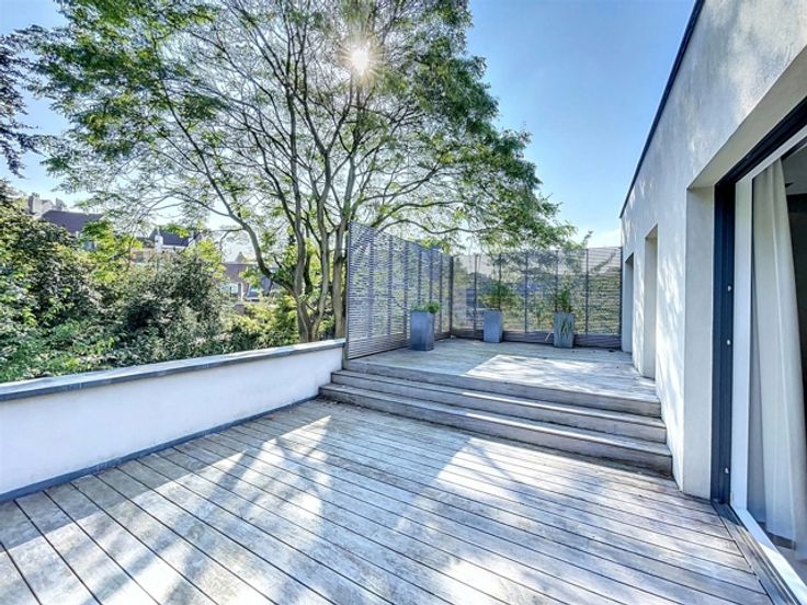 Face au parc Huart Hamoir et au square Riga, située en intérieur d’ilôt dans un écrin de verdure privatif, superbe maison/duplex de ±375m² bruts (superficie peb) avec jardin, terrasses, garage et parking extérieur. Composition REZ : vaste hall d’entrée, spacieux et lumineux séjour de ±80m² avec feu ouvert et terrasse/jardin attenant de ±650m², cuisine ouverte super-équipée de ±25m² (équipement Gaggenau et Smeg), chambre/bureau de ±18m² avec terrasse attenante, cellier/buanderie, wc séparé. 1ER : hall de nuit, master bedroom de ±40m² avec salle de bains privative et grande terrasse attenante de ±40m², dressing traversant, grande chambre de ±22m² avec dressing ouvert donnant sur sa salle de bains privative, belle chambre de ±20m² avec terrasse attenante, salle de bains avec wc. SOUS-SOL : large garage 2 places, local technique et chaufferie. Emplacements de parking extérieurs. Détails : parquet, boiseries et rangements sur mesure réalisés par un charpentier, feu ouvert, chauffage au sol, chaudière gaz Viessman, système d’alarme, porte de garage automatisé, nombreux espaces de rangement. Idéalement située à proximité de toutes commodités : nombreux commerces, restaurants, parcs, écoles, … Transports en commun : tram 7, 35, 55, 92, bus 59, 69, Gare de Schaerbeek. Annonce et indications non contractuelles, sous réserve de modifications. Info : est@macnash.com – Tel : 02 779 99 99 – ID 6598304