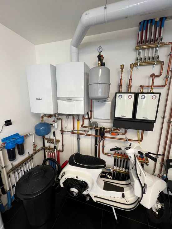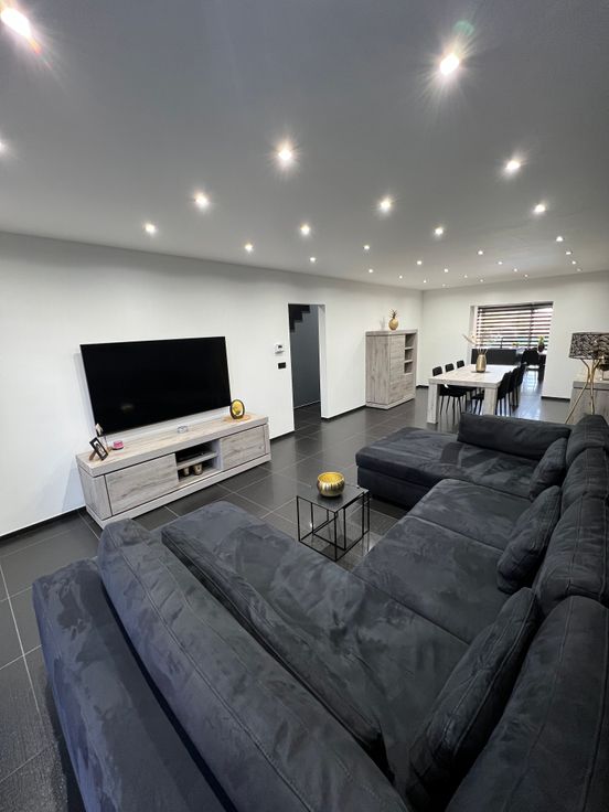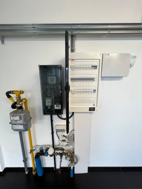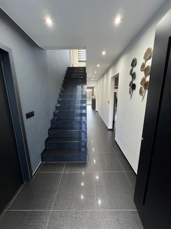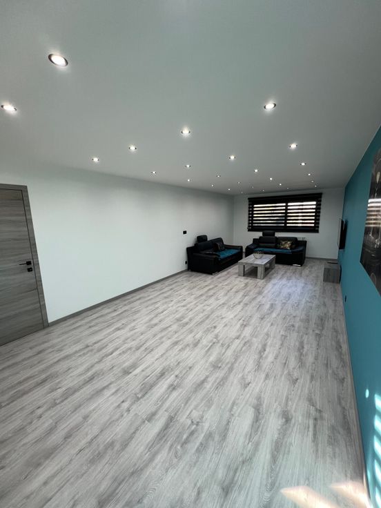 Confort :Châssis DV ALU Aliplast STAR 75-chauffage par le sol-chauffage central au gaz à l’étage avec vannes thermostatiques Honeywell-VMC simple flux-escalier en granit-électricité conforme -Adoucisseur d’eau-citerne d’eau avec groupe-chaudière Vaillant a condensation avec boiler Vaillant-système d’alarme-porte de garage sectionnelle motorisée.