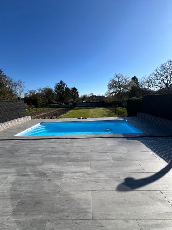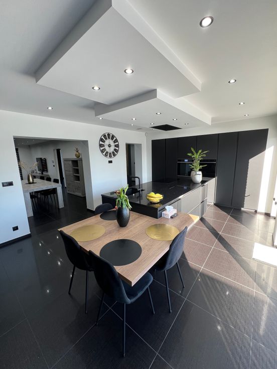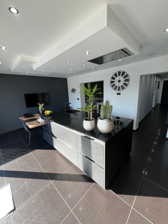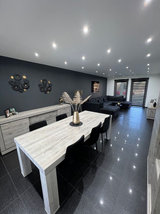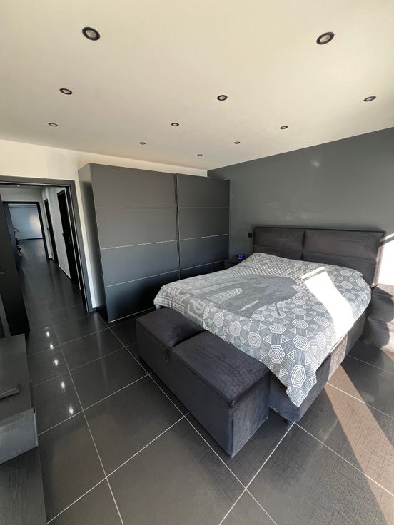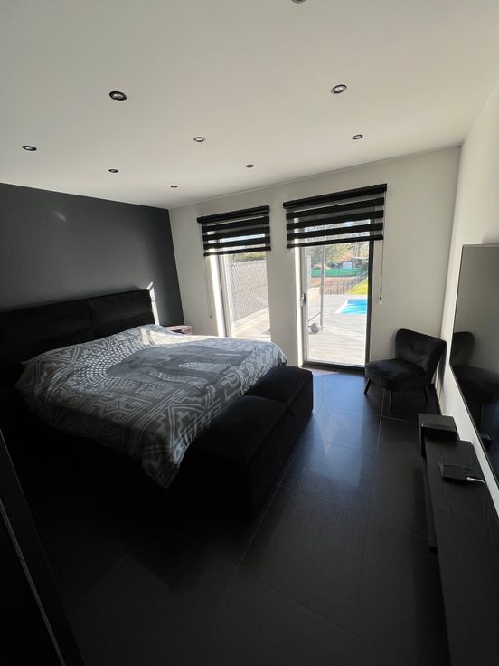 Composition :Hall d’entrée- grand living-cuisine américaine en granit high tech hyper équipée-grande chambre-salle de douche-wc-buanderie-grand garage 2 voitures(carrelé et chauffé par le sol)-terrasse 45m² avec piscine chauffée avec douche-grand jardin.