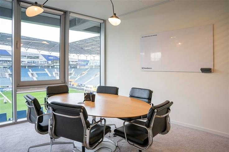 Alles is full service: meubels, secretariaat, telefoonpermanentie, meetingrooms met zicht op het voetbalveld, verwarming, wifi, elektriciteit, 1 gig glasvezel bilateraal en redunant, verwarming, elektriciteit...