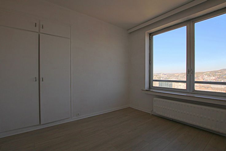 Le bureau Oppidum vous invite à louer un appartement ensoleillé de 60 m² selon les statuts de la copropriété, comprenant une cuisine équipée, un séjour lumineux, un hall d'entrée, un petit hall de nuit avec wc, 1chambre avec placard, une salle-de-bains. Etant donné qu'il est situé au 17ème étage, il bénéficie d'une vue dégagée et panoramique du séjour comme de la chambre. Loyer: 750 € / mois + charges communes 100 € (provision eaux comprise) D'un point de vue technique: châssis alu DV d'origine, électricité conforme, chaudière basse température , vidéophonie, porte d'entrée résistante au feu